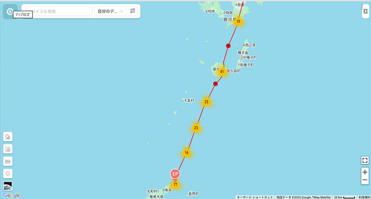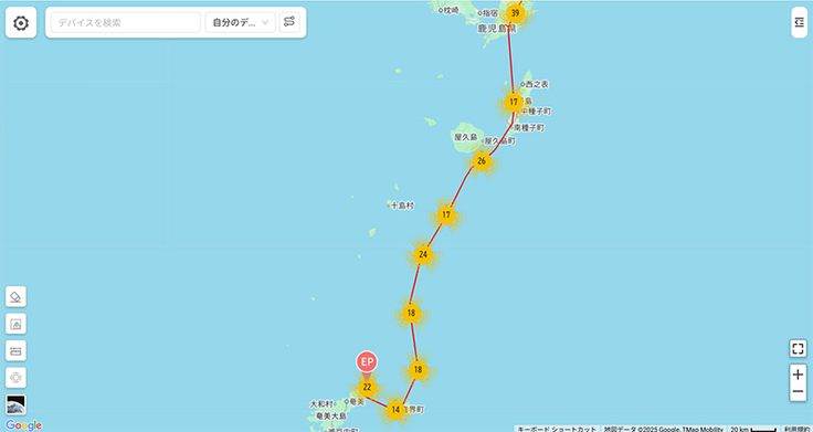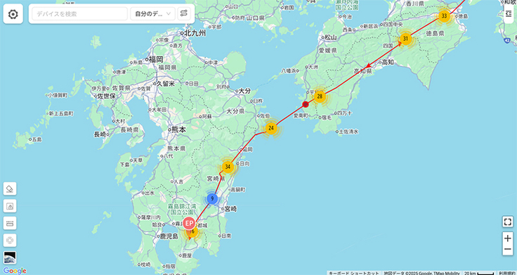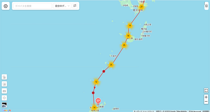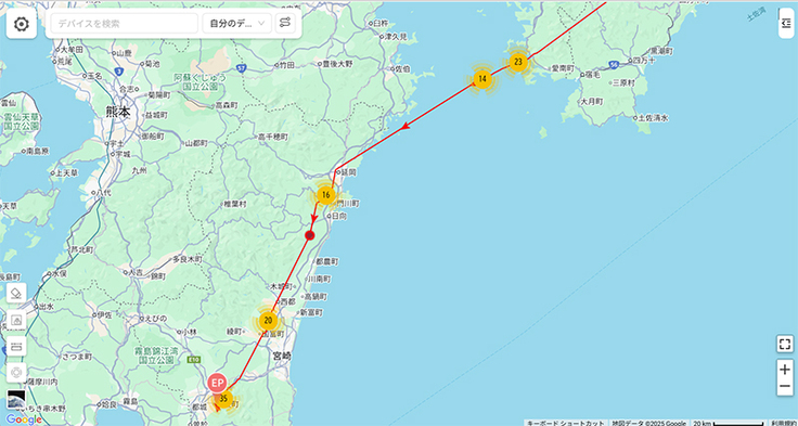 阿室①は九州南部に来ています。場所的に微妙ですが今日は九州を出たかもしれないですね。