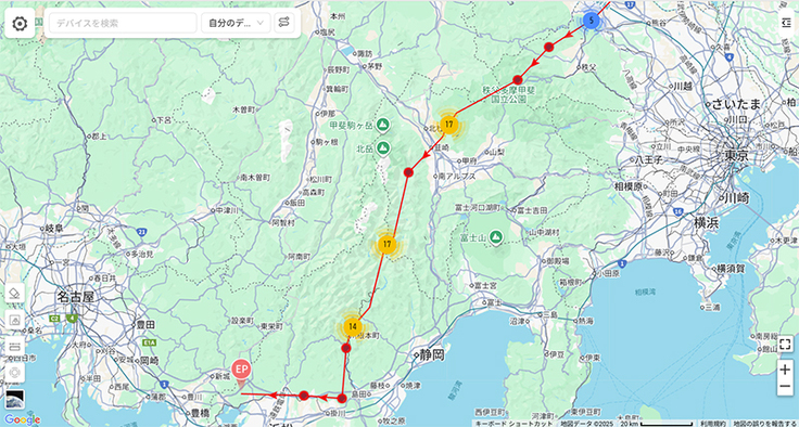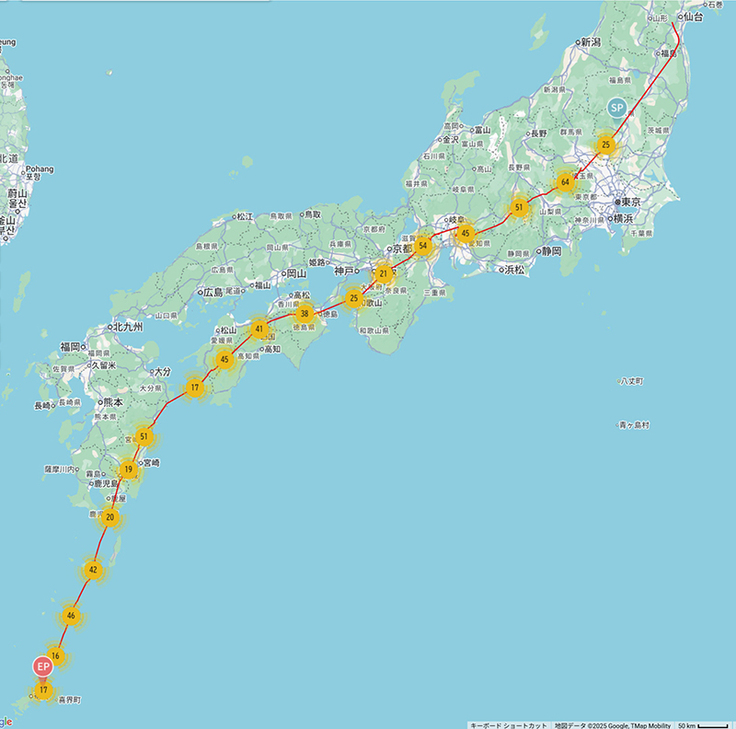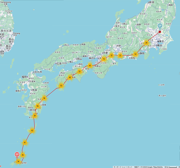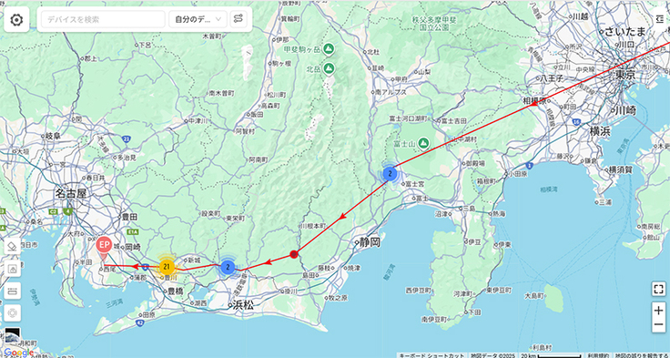 コテツがかなり進んで愛知県を越えそうです。スイッチが入ったように先に進んでいます。