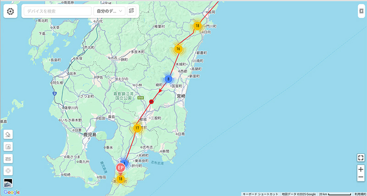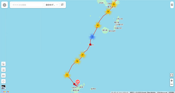阿室①はまだ九州ですが、9時現在でいよいよ最南端です。今頃は海に出ているのではないかと思います。