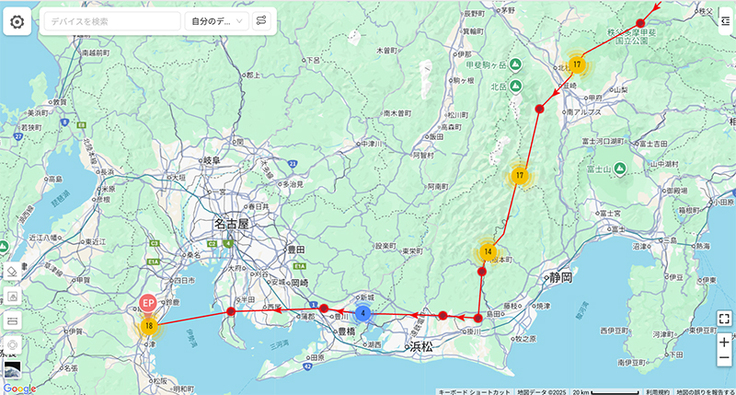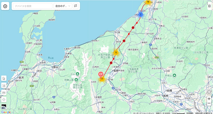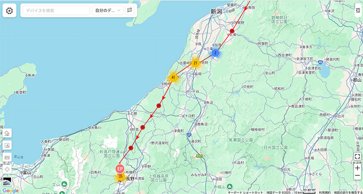 川上②が動き出しました。長野県まで来ていますが、少しとどまっているようにも見えます。進んでほしいですね!