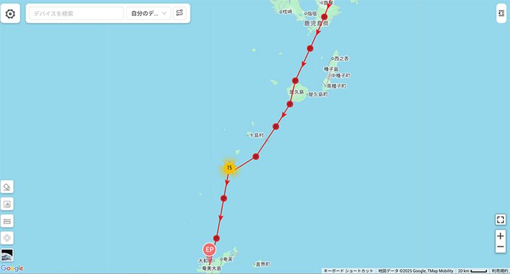 川上③も九州を離れました。もう奄美にいるかもしれないですね。明日が楽しみです。