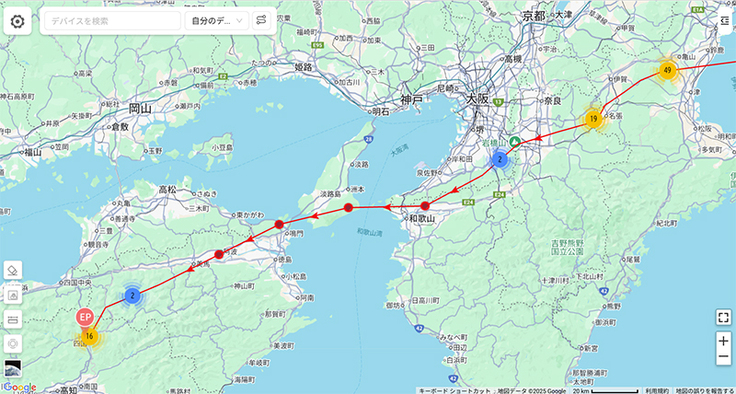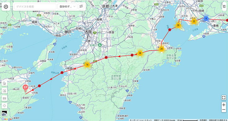 三鳥屋は淡路島を通って四国に入りました。迷いがあるような動きですが、無事奄美大島に戻ってきてほしいですね。