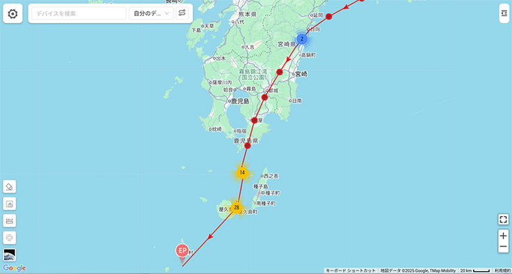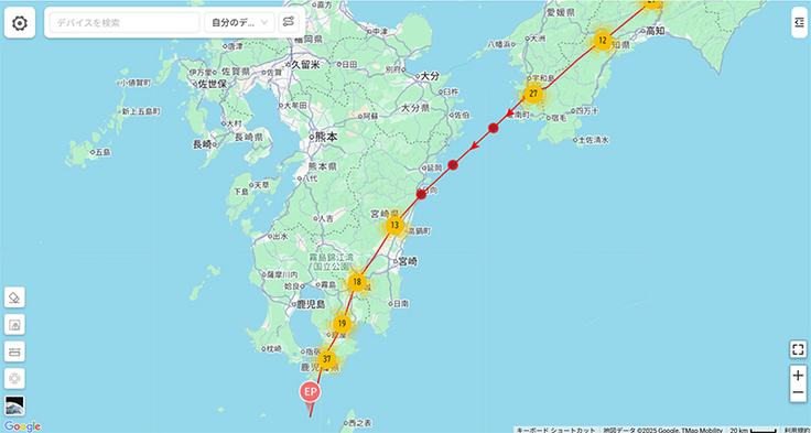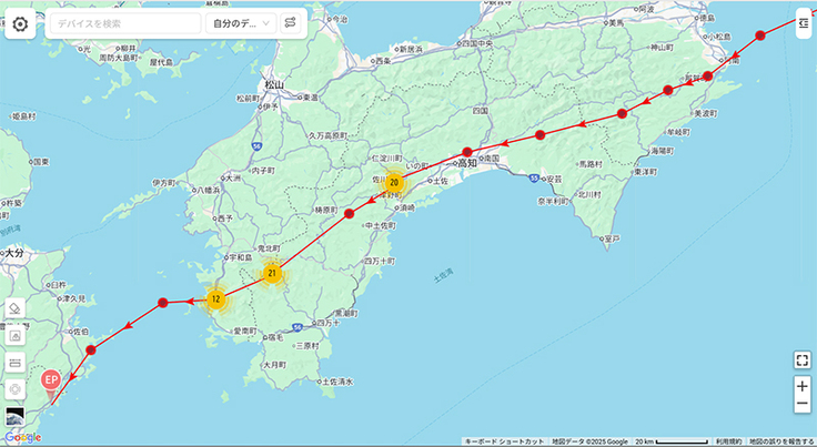 千葉組のダイゴが四国を出て九州に入りそうです。すでに九州も通過して南に向かっているかもしれません。
