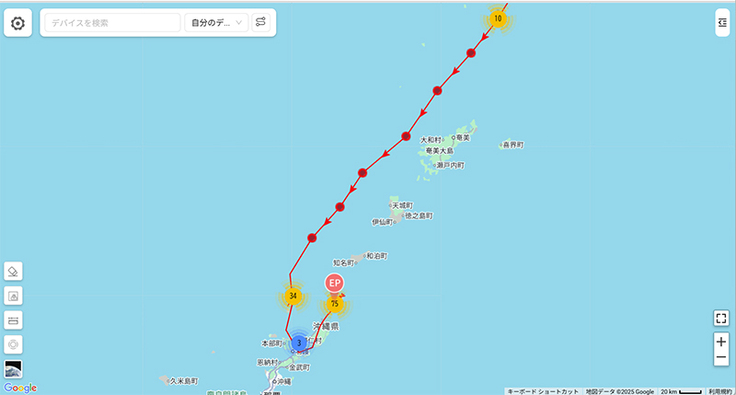 龍郷小からデータが来ました!伊平屋から沖縄島、与論島に入ってまた海に出ています。明らかに動揺している感じがします。誤って奄美大島をスルーしてしまったのでは??目的地が奄美大島なら無事戻れるといいのですが。こっちじゃないと教えてあげたいですね。。
