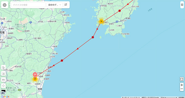 生勝①は伊勢湾を渡ってから動きがなく、数日データが来ていませんでしたが、既に九州に入っているようです。