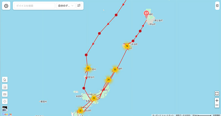 今日のデータでは3羽が喜界島に立ち寄っています。現地の天候の状態など聞いてみましたが、喜界島に流されるような要因は見当たらないようです。興味深い内容です。