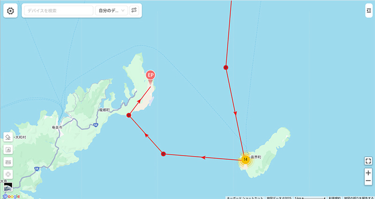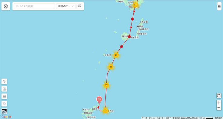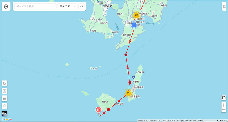 ツムグが屋久島沿いを移動中、部連①も種子島まで移動しています。