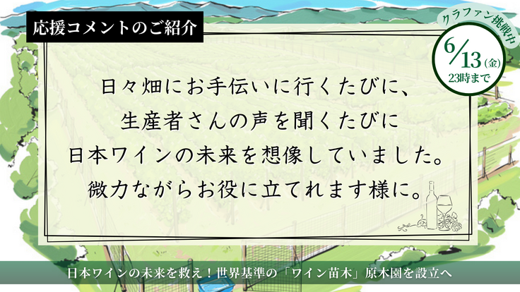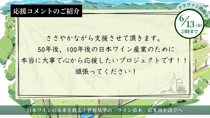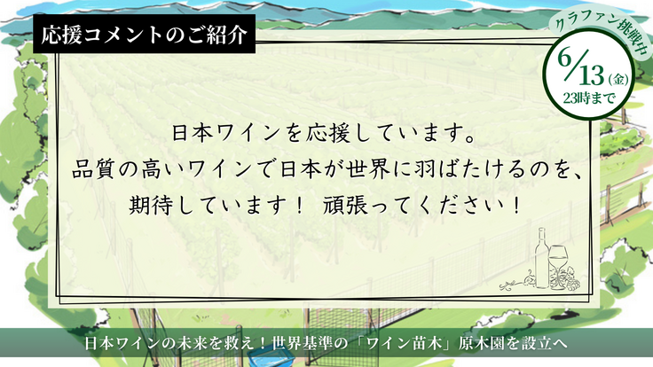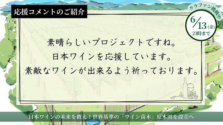 また、プロジェクトへ寄せられた応援メッセージを、ここでご紹介させていただきます!