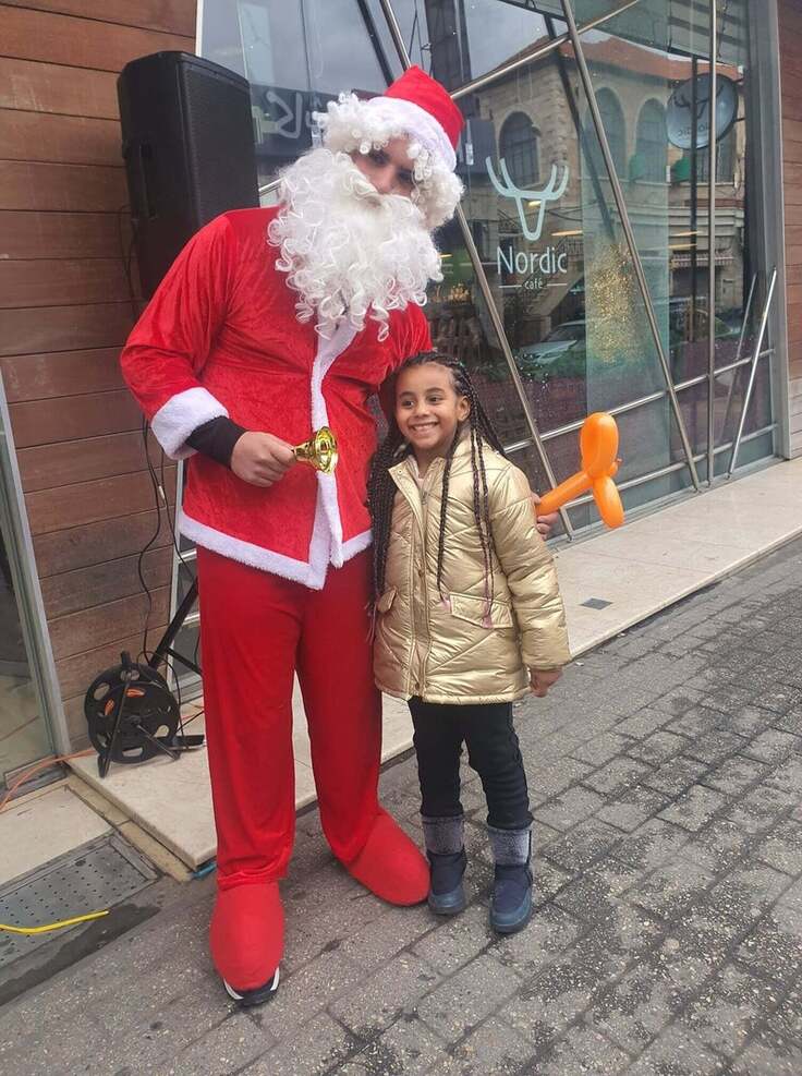 横にスピーカーも用意し、クリスマスの音楽とともにバルーンアートで子どもたちを引き寄せ、そのあとに大人が子どもに連れられて入るように仕向ける戦略でしたが、それが大当たりでした。(パレスチナではどこでもこれが効くそう・・・)