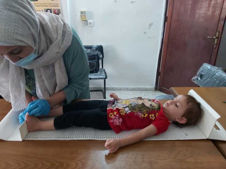 ガザ地区中部にて、パートナー団体AEIの保健師、地域のボランティア女性20名とともに、5歳以下の子どもを対象とした健診、栄養失調や発達障がい、その他の疾患が発見された場合の再検査や専門機関への紹介、各保護者への子育てカウンセリング、保護者や妊産婦への各種講習を行いました。