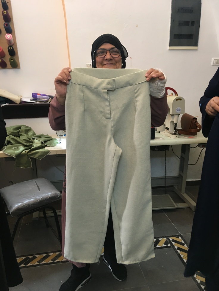 「人生でミシンを使うのは初めてなの」と洋裁・ファッションデザイン研修の初日に、はにかみながら縫った手提げ袋を掲げたウッラーさん。そんな彼女も120時間におよぶ研修の最終日には、手作りのズボンを自信満々の笑みで見せてくれました。
