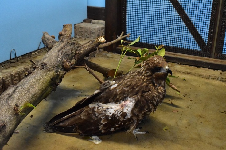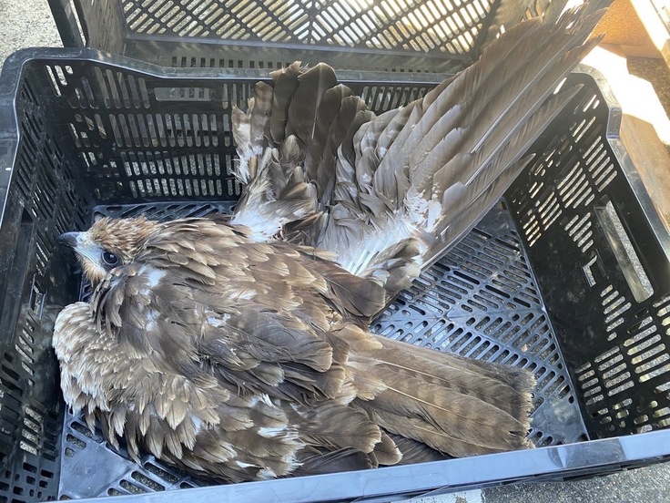 内容は、『トラックを運転していたところ、トビと衝突してしまい、現在保護をしているのだが、どう すれば良いか』とのことでした。