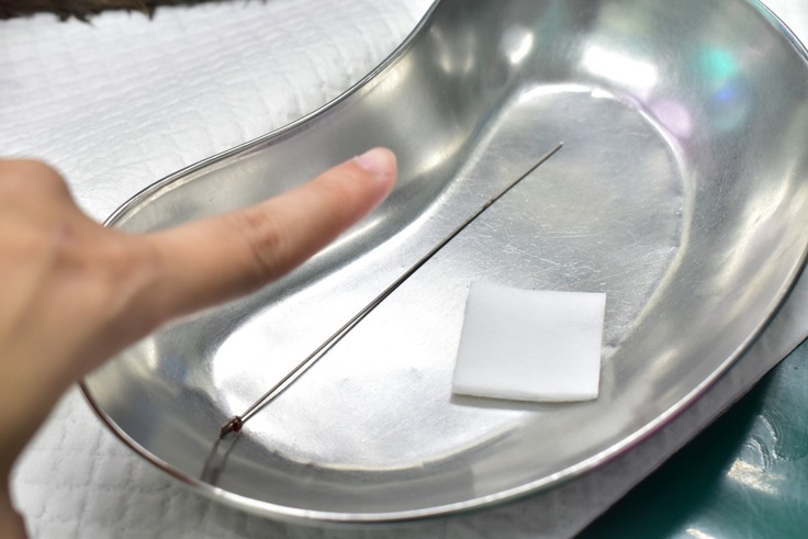 手術は順調に進み、骨と骨の間に、14 cmのワイヤーピンを入れました。