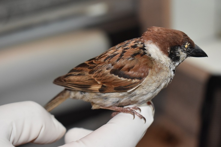 このスズメは、道端でうずくまっている所を保護されてきました。保護されてきた時はウィルスに感染してしまったようで、両目が膿で塞がっている状態でした。