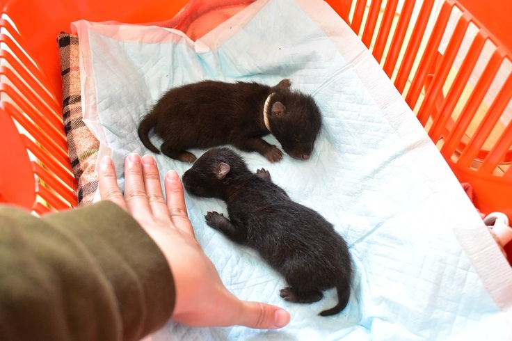 実は上の写真のように、タヌキの赤ちゃんは生まれた直後は全身が真っ黒で、タヌキらしい模様が顔に出始めるのは生後1ヶ月ほど経ってからです。