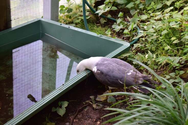 最初は初めての場所に緊張してあまり活発には動きませんでしたが、今ではプールの水を飲んだり、翼を広げたりしてのびのびと過ごしています!