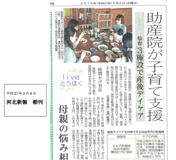 今月は県内の入院施設がある助産院のデイケアが地元紙の河北新報に取り上げて頂いたり、産後ケアについて随分注目されてきたように感じました。