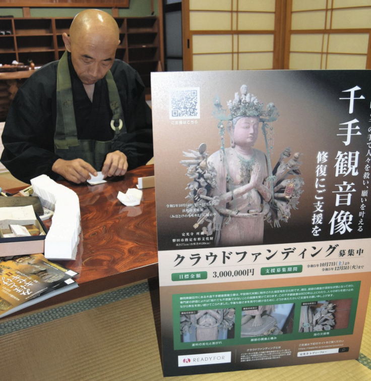 CFで「千手観音像」修復支援を募る 磐田市・定光寺住職