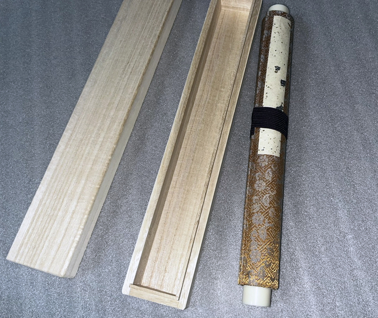 さて、木造千手観音菩薩立像の内部空洞の寸法を確認いたしましたため、巻紙を桐箱に納めて保管することとなりました。巻紙を桐箱に収めることにより、仏像内に末永くお納めいただける仕様となります。