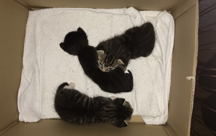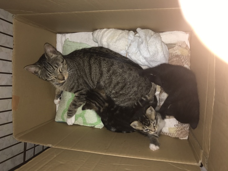 そうした状況下、私はどうしてもこの猫を見捨てられずガレージに段ボール箱で小屋を作って滞在を許しました。すると、この猫は雌猫だったようで、5月23日に3匹の子猫を出産致しました。