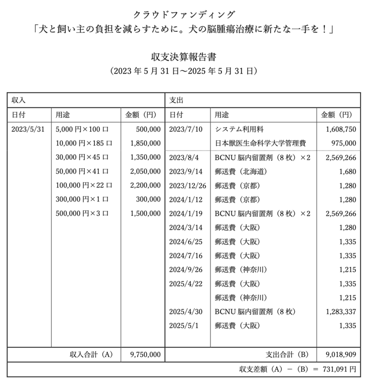 2025年5月31日までの収支は画像のようになっておりますのでご確認ください.