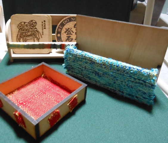 (ものづくり作品のコラボ:木工・さをり織り・レーザー加工)