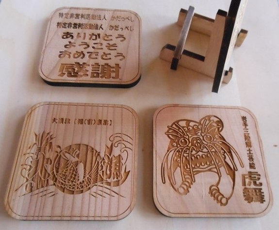 地域発信木製コースター(立てかけ用支え付:県産材利用)