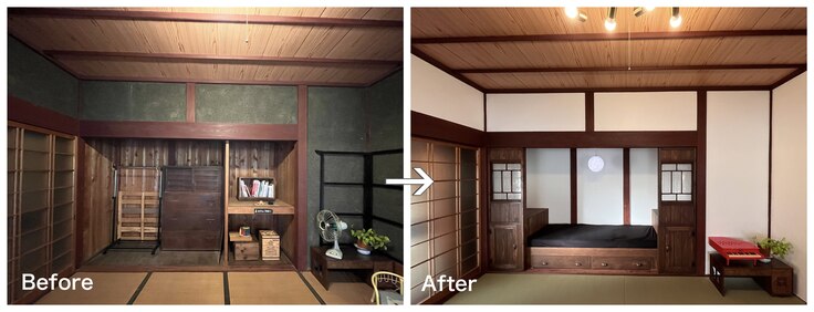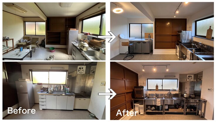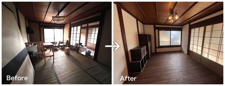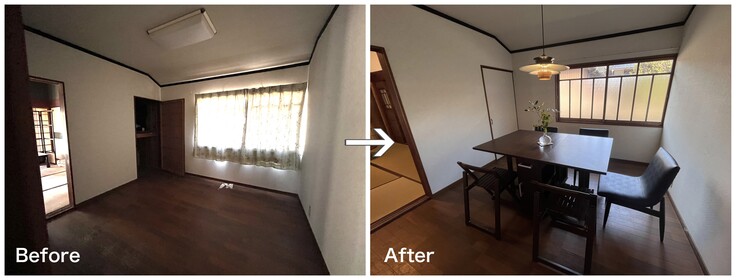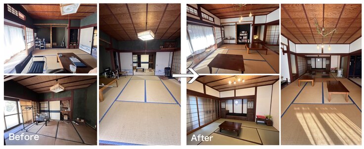 素人で難しいところはプロの手も借りながら、漆喰塗や塗装など自分たちできるところは手間と時間を惜しまず、心を込めてコツコツと約半年をかけてつくりあげた古民家のビフォーアフターをご覧ください。