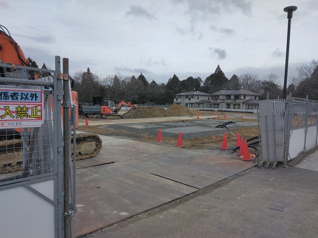 今年度は現在建て替え工事中の施設本館、柊ホーム、椿ホームの完成が予定されています。柊ホームの解体が終わり、基礎の着工に進んでいます。子どもたちは、ショベルカーなどの重機や作業員の方が工事をしている様子を見て「すげー!」「新しいとこ出来てる」と驚き、「俺大人になったらこの仕事するねん!」など思い思いの感想を口にしています。