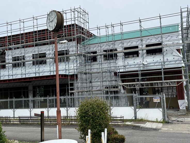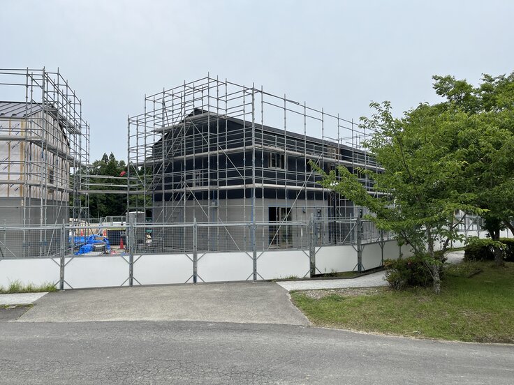 先週と比べると外装がたくさん見えてきました。これが、子どもたちと大人で決めたこだわりの外装です。