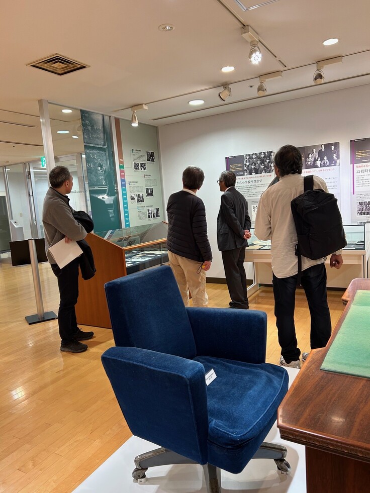 当日は、名誉教授の金谷先生、受川教授、山崎准教授にご協力いただき、展示に使用できそうな資料や掲示物を一緒に確認しました。お忙しい中、私たちの趣旨をご理解いただき、丁寧にご案内くださった先生方には、心より感謝申し上げます。