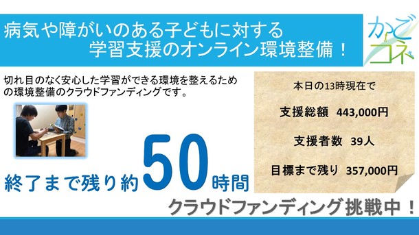 病気や障がいがある子ども達へ。遠隔での学習支援の環境整備を!