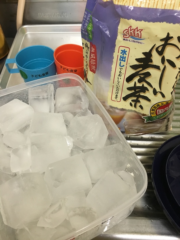 来る子どもたちが暑い中歩いてくることを考え、4日前から自宅の冷蔵庫で氷をたくさん作りためてもってきたボランティアさんもいます!