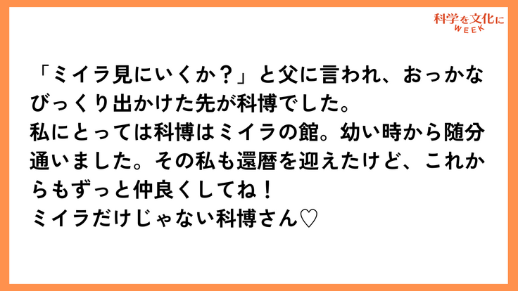 先日開催した「科学を文化にWEEK」から早いもので1ヶ月。