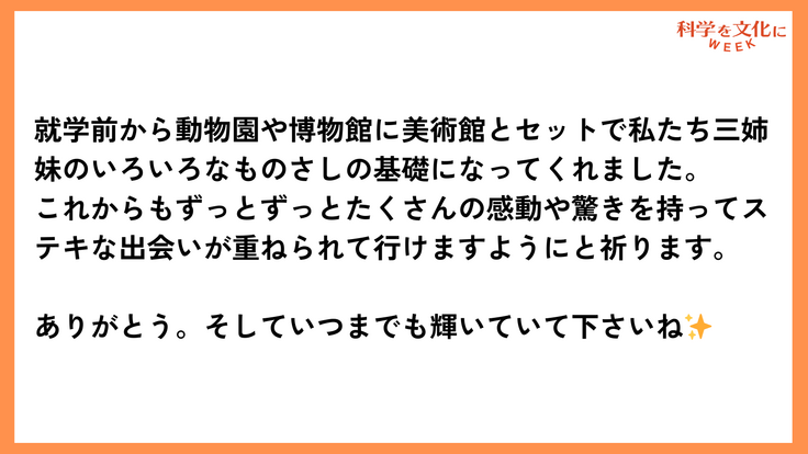皆さまからいただいた温かい言葉の数々は当館の宝です。