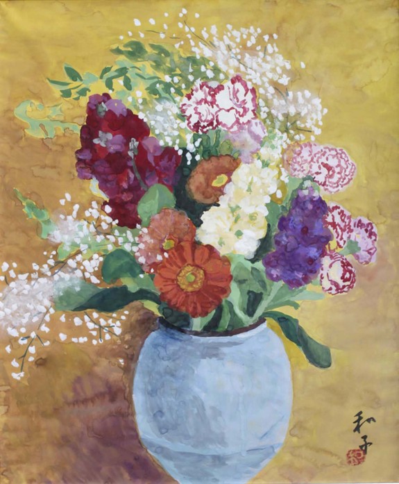 さて表題のとおり当館の名誉館長85歳の日本画展示です。