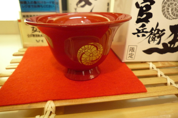 (プラスティックで出来ていますが、官兵衛人気に支えられ、この盃は姫路で最も人気のお土産品となりました。)
