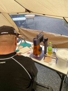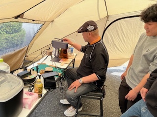 ※1 敷地内にキャンプ道具拡げてますし、そりゃそうですよねw そこは普段の介護と一緒、信頼関係が出来る前は大体こんな感じです。そこからがっちり相手のハートを掴むことできる、それこそが、我々が専門職「介護福祉士」たる所以なのです♪