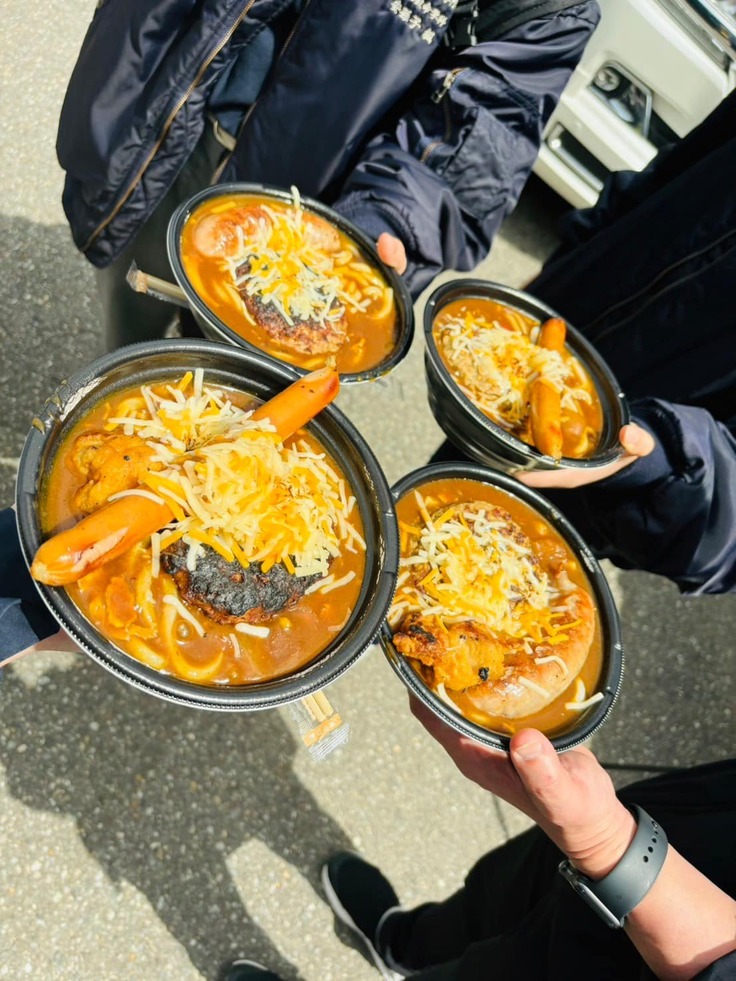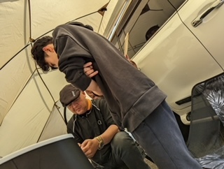 石川県七尾市は、報道で最も取り上げられる珠洲市、輪島市等と比べると被害状況はたしかに小さいのかもしれませんが、現在進行形で「被災地」であるということを否が応でも感じる震災の爪痕が残っています。凸凹の高速道路を降りて、最初に立ち寄ったコンビニで「水道が復旧していないためトイレ使用できません」との貼り紙を目にしました。それまで、夜通し運転を続け、多少なりともテンションが上がっていた自分達が、一気に冷静になっていくのを感じました。