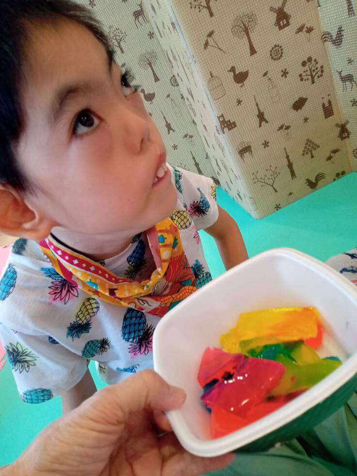 今週は、様々な色の食紅を使って、寒天を作って遊んでいます。
