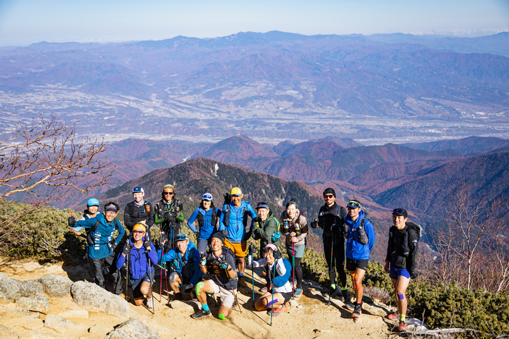 全長およそ280km、累積獲得標高はおよそ19300m。この長い道のりを4泊5日かけて走破します。地元・山梨のトレイルを走りながら、「甲府盆地の周りの山々をつなげて、ひとつのコースにできるのではないか?」と思い始めたのは10年以上前のこと。地元の友人たちと「甲斐国ロングトレイル」と名づけて、調査を進めました。2019年に半分の150キロほどを32時間かけて走り、コロナ禍で海外遠征ができなくなった2020年に初めて、今回のコースより少し長い336kmを4日と23時間28分かけて走破することができました。北の金峰山、東の大菩薩嶺をはじめとする甲州アルプス、南の御坂山地など、西の南アルプス、甲府盆地を取り囲む、全部で53の山頂を踏んだことになります。