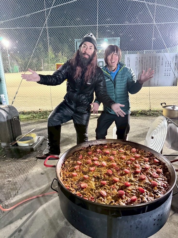 下山後はサンロードしもべの湯で暖まり、キャンプでは初めての全員そろっての食事となりました。夕食は白馬から来ていただいただ三八商店さんによるバターチキンカレー。これも絶品です。皆でのんびりとした贅沢な時間を過ごしました。最高の時間ですね。