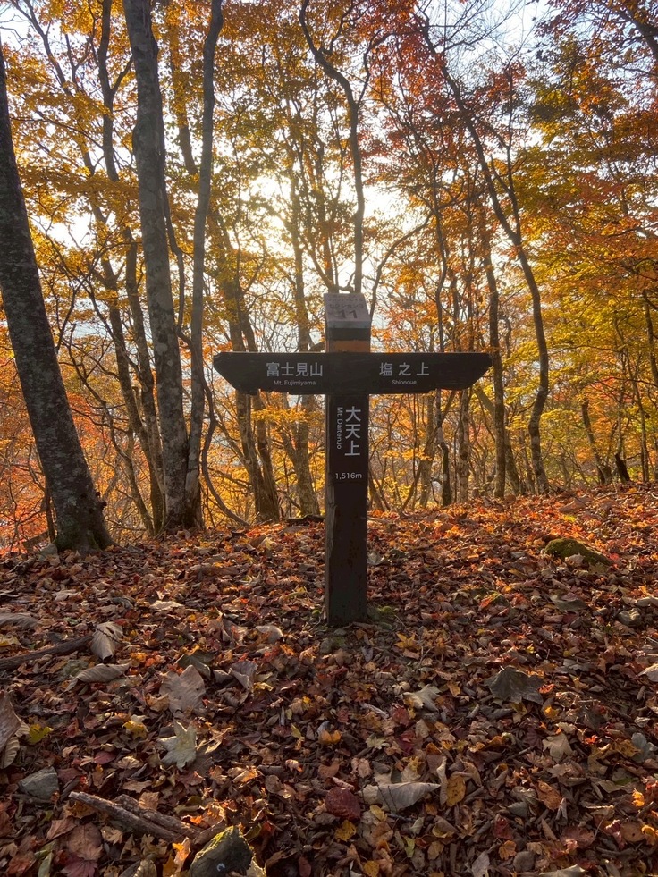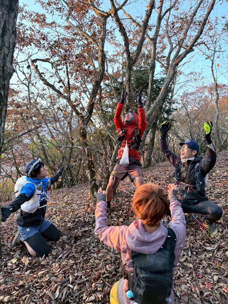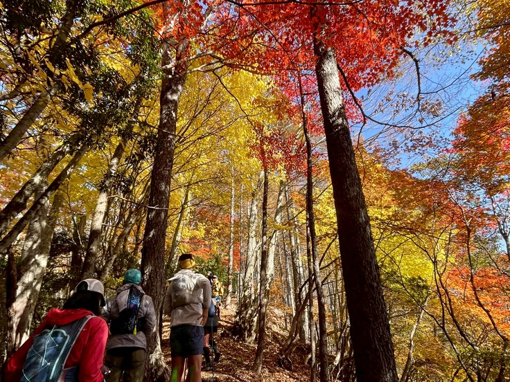 その後、北奥千丈ケ岳、シラベ平、ゴトメキ、黒金山と繋ぎ、8時過ぎに青笹集落へと下ることができ、受付2分前に三富笛吹の湯滑り込み、最高の湯につかることができました。いいとこどりコースの皆さんは青笹集落への道は紅葉がとてもきれいだったと言っていました。