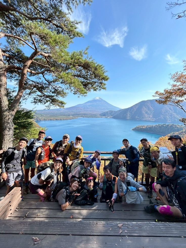 11月7日いよいよ富士山に一番近づく御坂山地縦走です。文句なしの晴天です。2日目に一度も富士山を見ていなかったので、いきなりの特大の富士山にみなさん驚いていたようです。新藤峠フジヤマツインテラスは極寒でしたが、あの富士山と河口湖の夜景は忘れません。