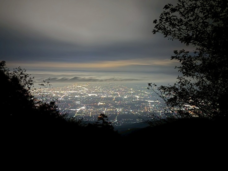 行程はとても厳しいのですが、閉会式後の参加者のみなさんの完走発表では、この日のルートが一番良かった、とのお話が目立ちました。私は最後尾グループで池の茶屋駐車場に到着しましたが、関門時間との闘いの部分もありまして、そこで車で芦安にワープする方、そのまま自分の足で芦安に行く方、そんな選択を目の当たりにしました。本当は自分の足で進みたい、しかし自分の体の状態をしっかりと考えられて行動選択されていると感じました。集団行動においてとても大切なことです。池の茶屋から先は櫛形山に登り上げます。ここは夜景がとてもきれいな場所です。