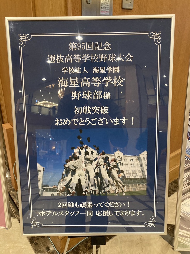 試合から宿舎に戻るとホテルの皆様がオシャレなパネルを初戦突破仕様にして出迎えていただきました♪