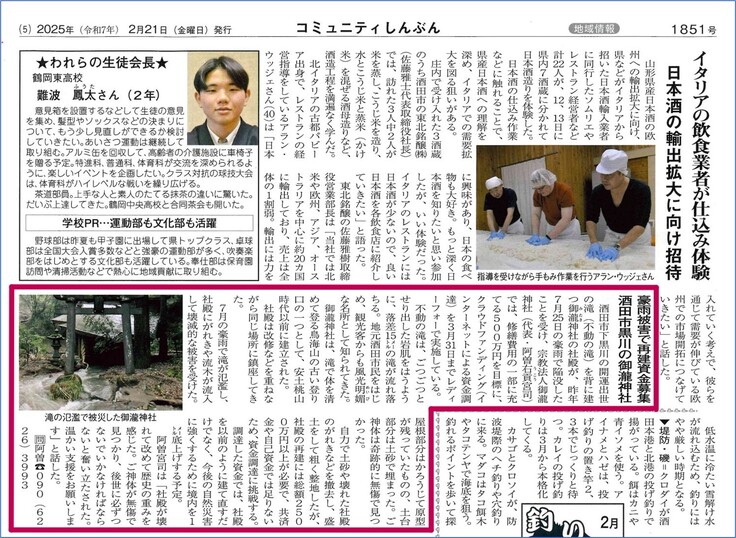 庄内地域 郷土の「コミュニティしんぶん」2025年 2月21日号 から応援いただきました!