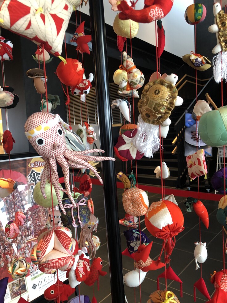 酒田市では毎年この季節「酒田雛街道」というイベントが開催され、各所でお雛様や傘福の展示が華やかに行われます。酒田駅前交流施設『ミライニ』様にも、とてもかわいらしい傘福が展示されておりました。様々な願いを叶えるとされる傘福。神社の早期復興と支援者皆様方のご健康、ご多幸をお祈りいたしました。