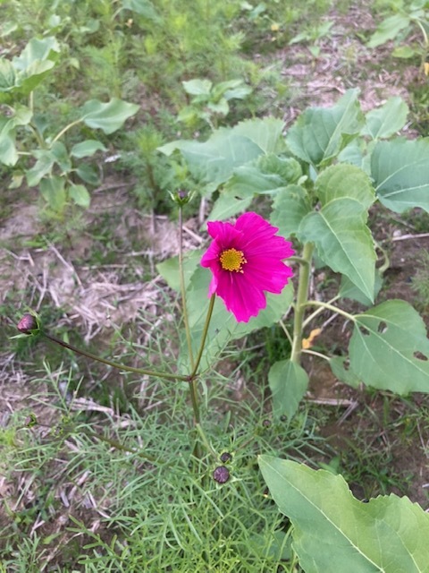 今年のコスモスは徳島県南部他の畑を観察する限り、丈が例年よりも低いイメージです。今回咲いたコスモスもわずか30㎝ほどで花を咲かせました。