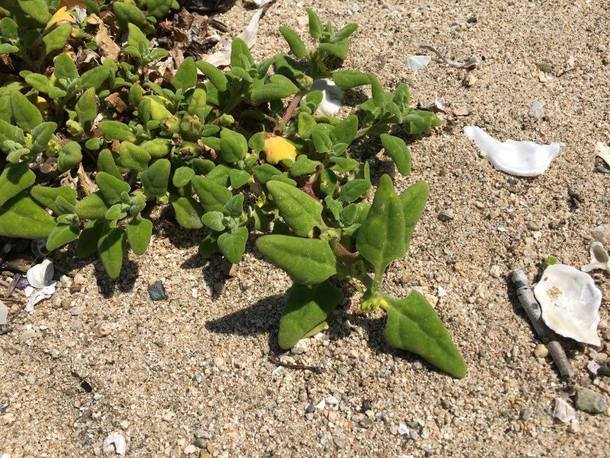 島の浜では今の時期、「ハマダイコン」や「ツルナ」といった海浜植物が群生し、花や緑が海や砂浜に映えてとてもきれいだ。